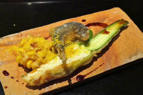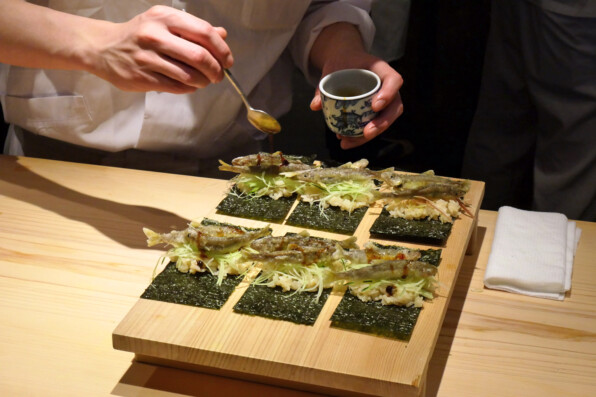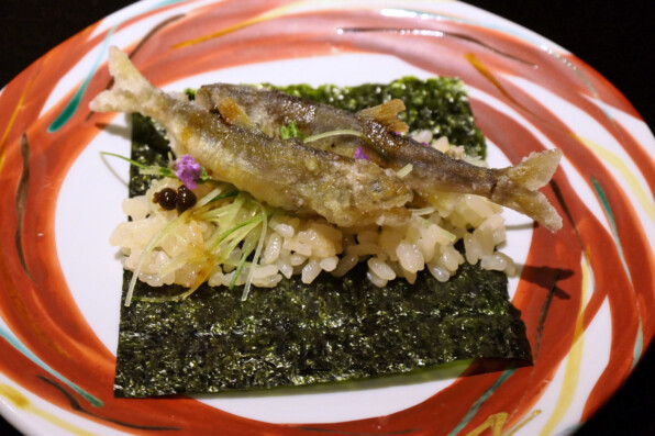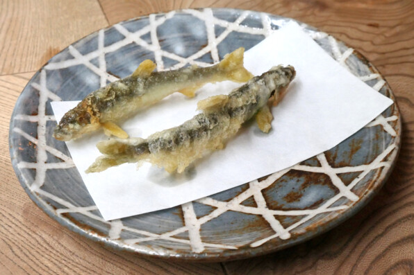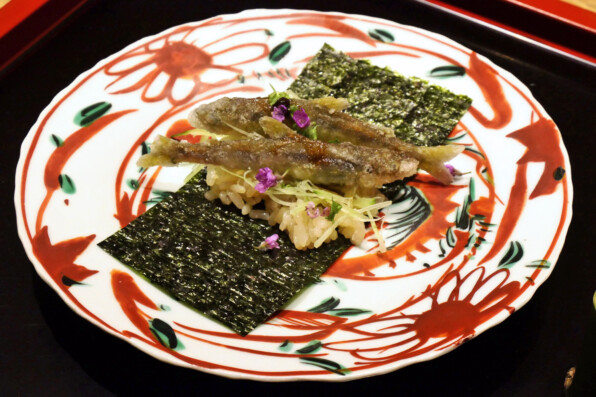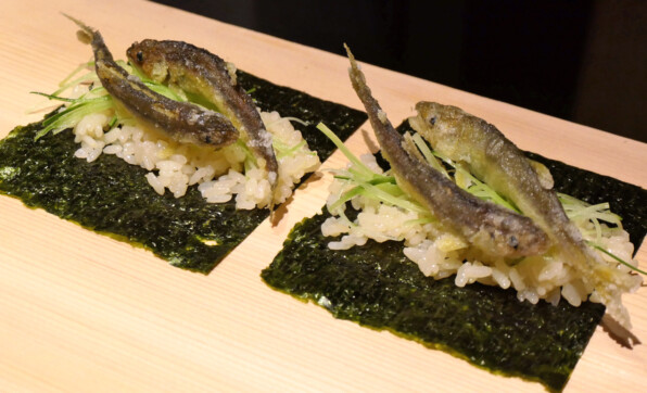 ●琵琶湖の稚鮎をさくさくに揚げたもので、お寿司です。