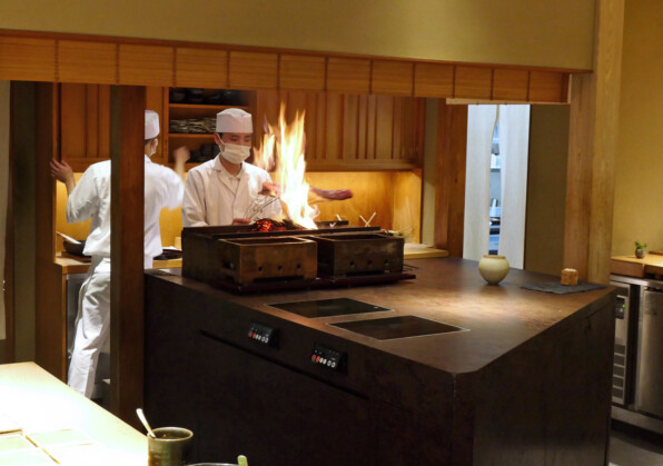 穴子を炙って、ひととき、室内がケムケムになっています。