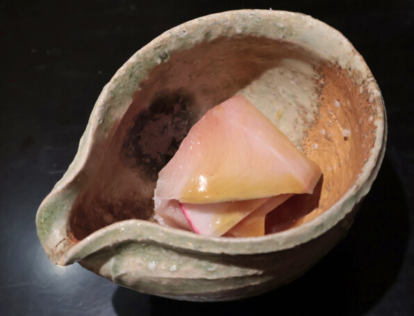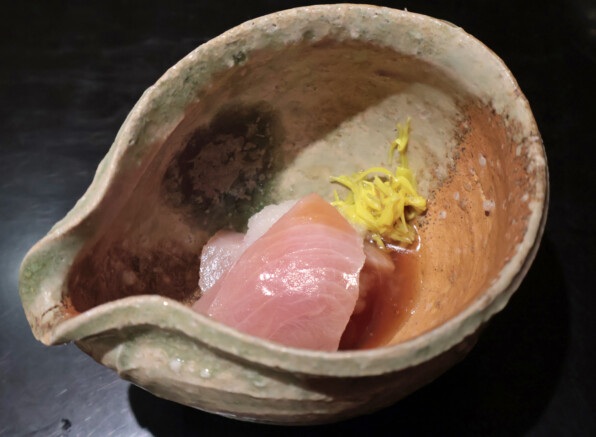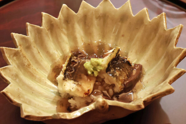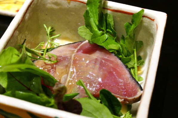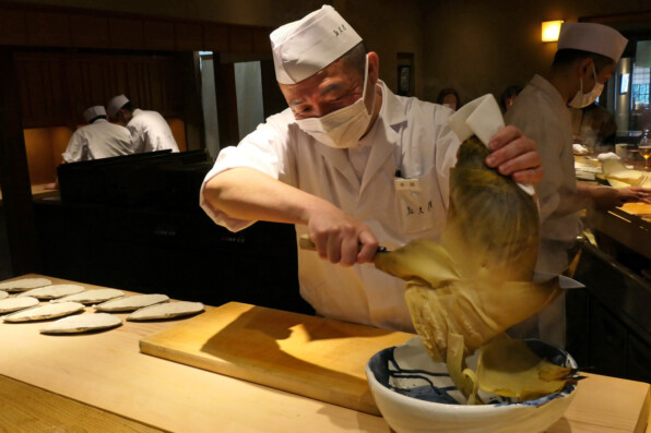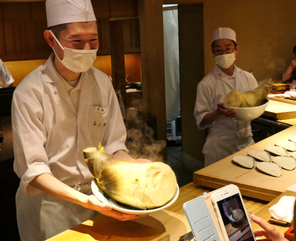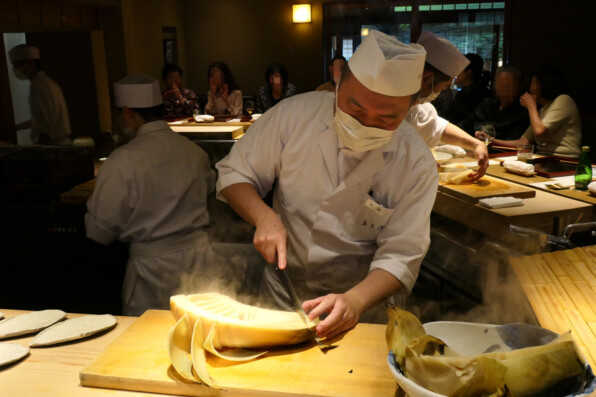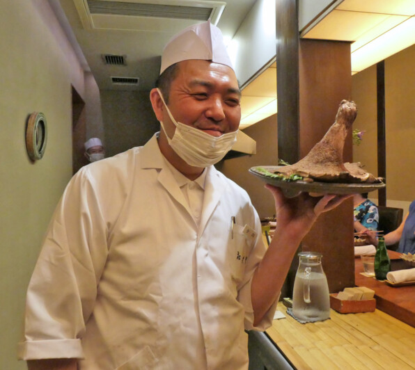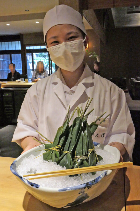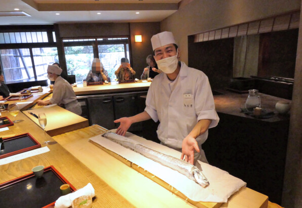 ●太刀魚をプレゼンしてくれる、竹中祐次さん。「和久傳」さん8年目ということ。この後この太刀魚に炭を当てて炙って、棒寿司に仕立ててくださいました。