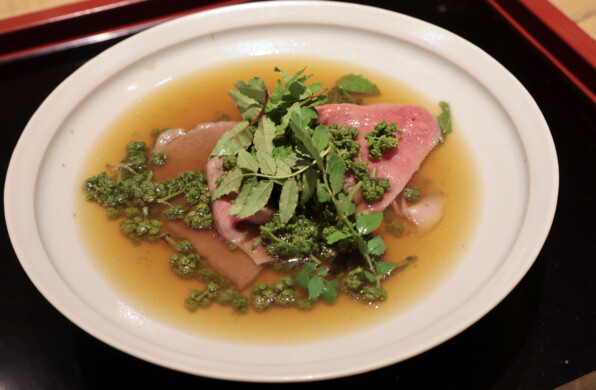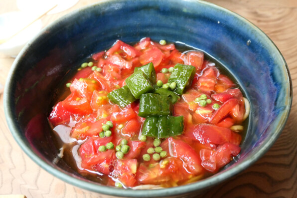 ●これは締めのお蕎麦ですが、トマトで覆われた目にも美麗なお蕎麦。