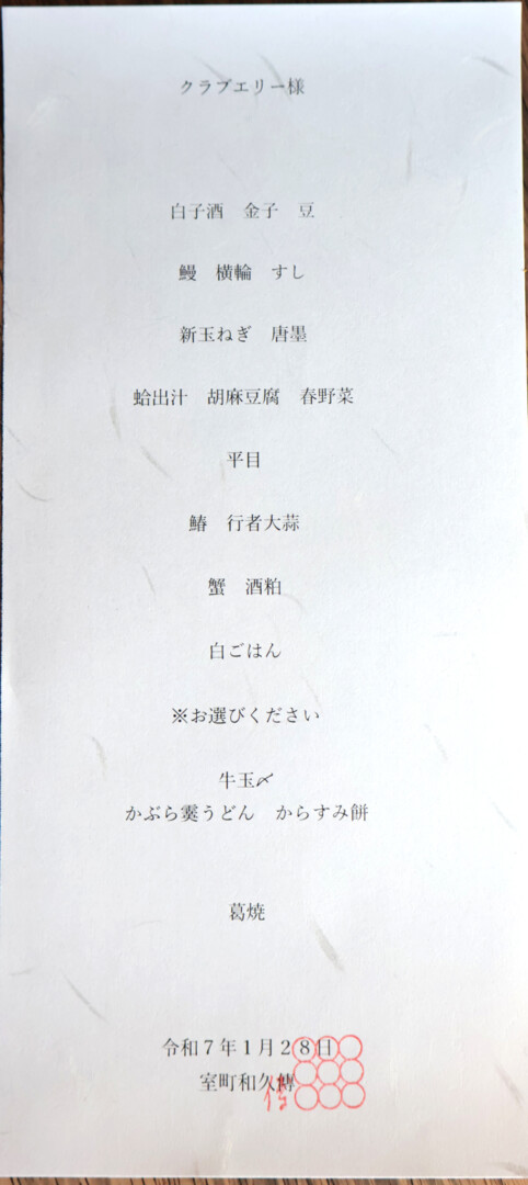 クラブエリーを「室町和久傳」さんにお願いしました。