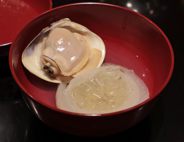 ●はまぐりと黄玉ねぎ、葛切りのお椀