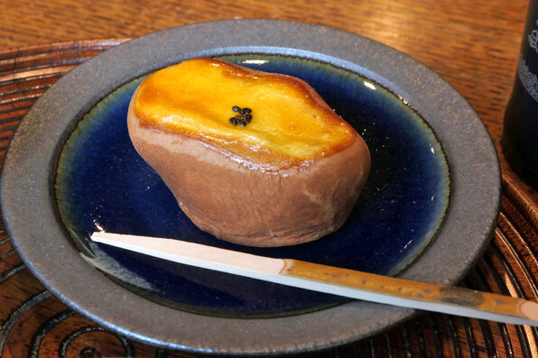 先日のある日、煎茶と「小松屋」さん(寺町通り御池下ル西側、1912年創業)の やきいも です。