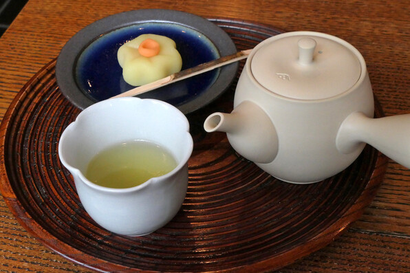 ●煎茶は「鳳泉」を選択。お湯も添えられて2煎め3煎めと楽しめます。以前はどーんとポットでお湯が供されて、初めから自分で淹れる式でしたが、今は一煎めは淹れてきてくださいます。