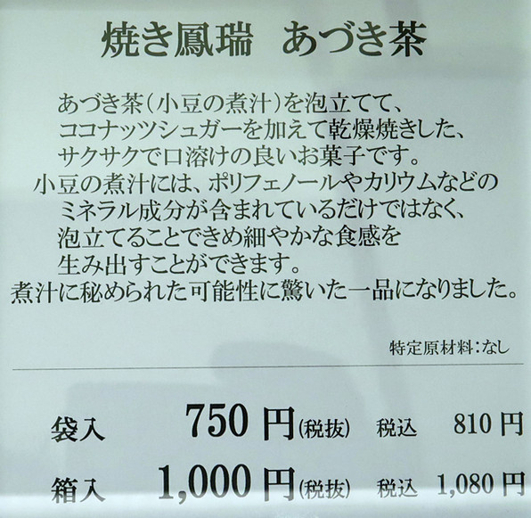 ■ 新しい「焼き鳳瑞」は小豆の煮汁+ココナッツシュガーをベースに作られています。口に入れるなり香りを残しながらしゅわっと溶けるはかなさがすてきなお菓子でした。