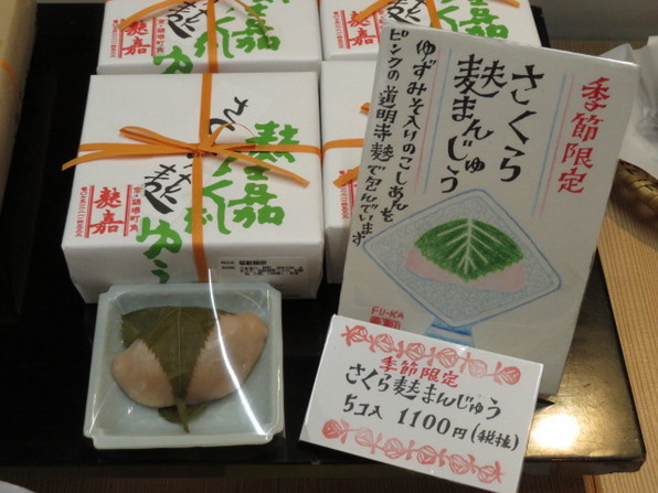 ■ 春の気分になったのが、いただいたこれ、「麩嘉」さんの麩饅頭、桜ヴァージョン。なんとも風情よく、つるりもっちりした麸にこしあんで繊細優美、これ気に入って、錦のお店に見に行きました。