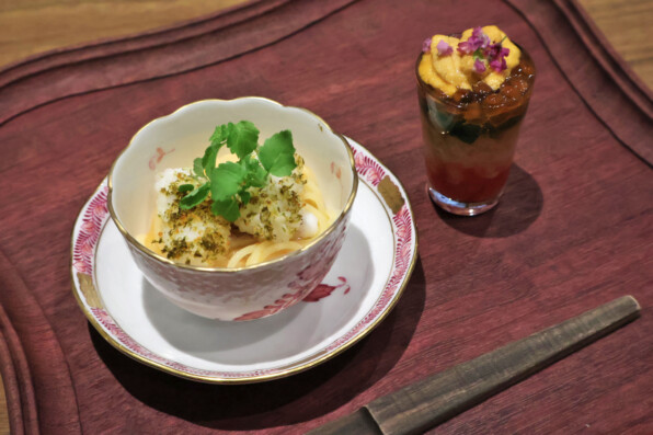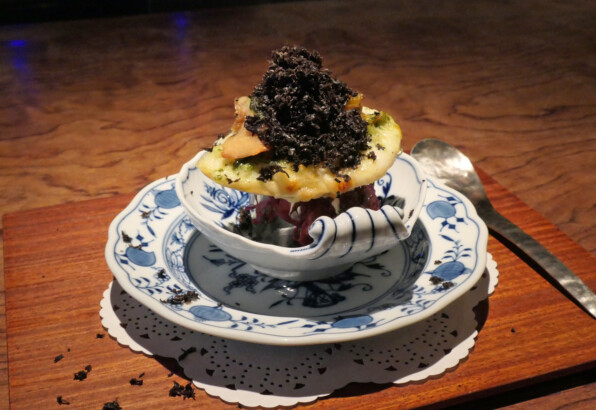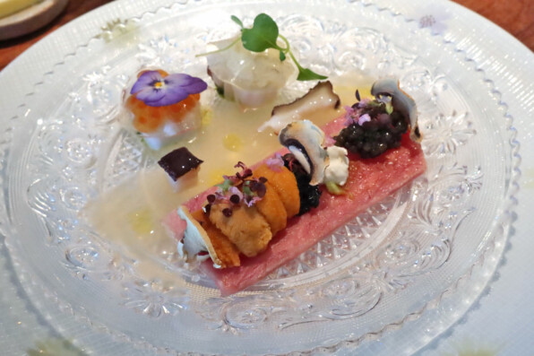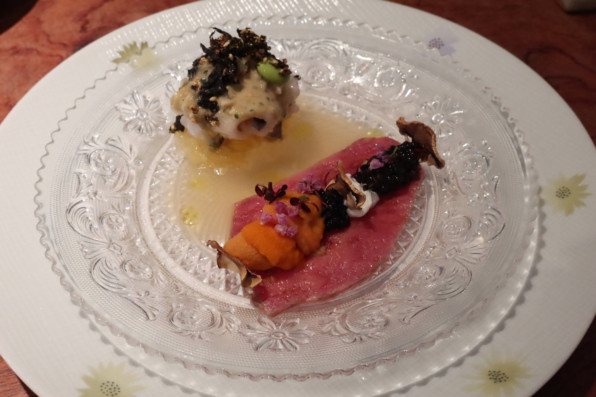 雲丹、海苔、ブッラータ、自家製ベーコン、カヴィア。