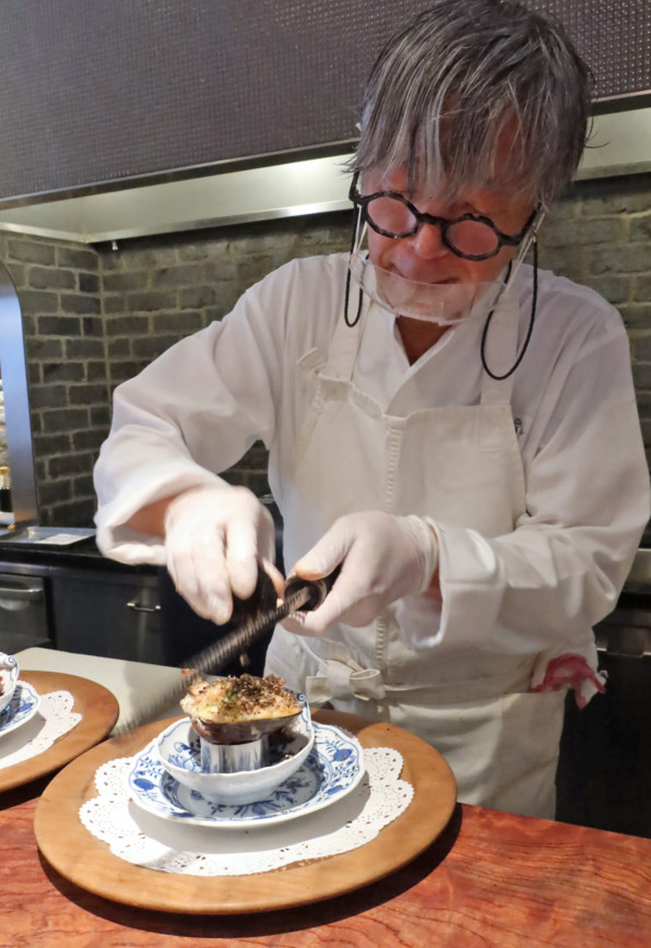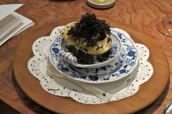 はまぐりグラタンの上から、アキテーヌのトリュフをばさばさと削ってくれます。むせるほど香り立ちます😭