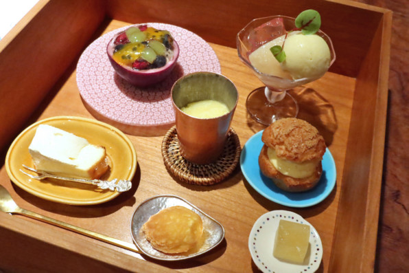 米粉のシュークリーム、琥珀糖、マドレーヌ、