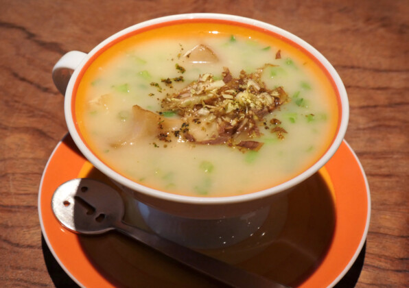 いたおみき=酒粕のことです。かつおと昆布だしベースの酒粕スープでした。