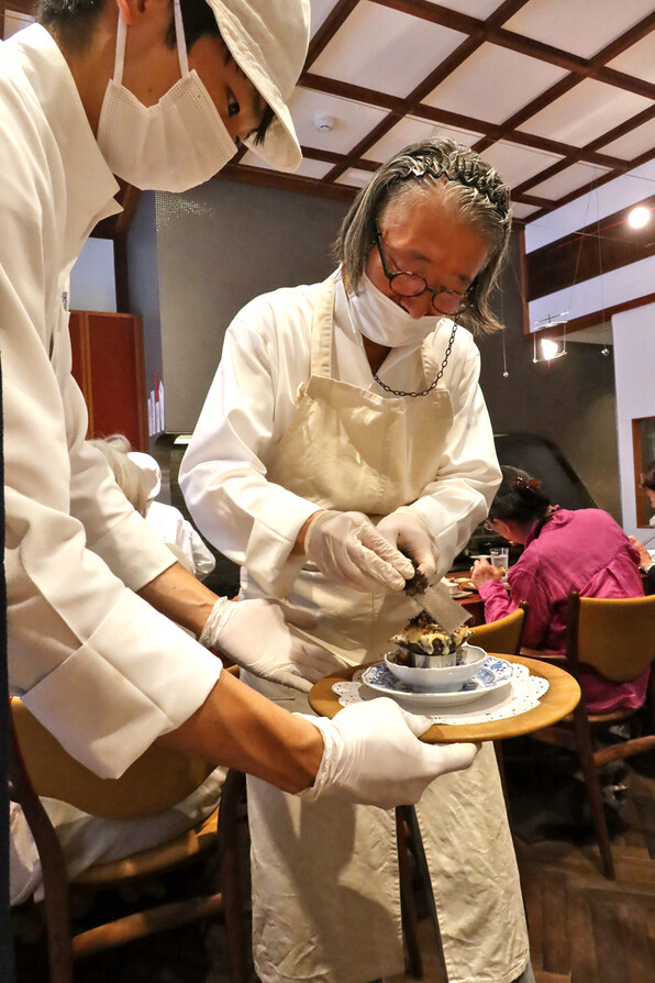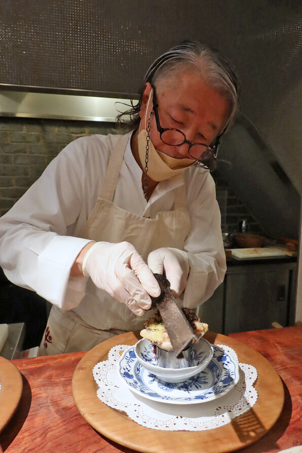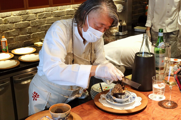 ●はまぐりのグラタンに、かつお節のようにたっぷりトリュフを削りかけてくださいます。