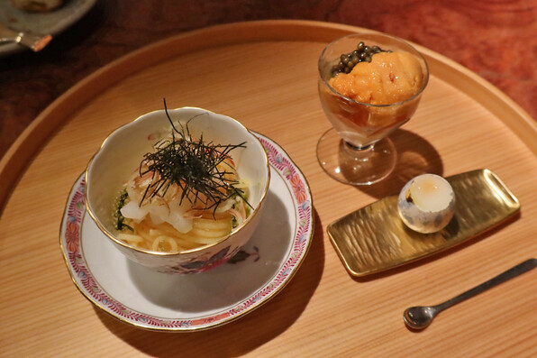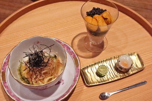 ●やりいか、雲丹、カヴィアの冷製パスタ。