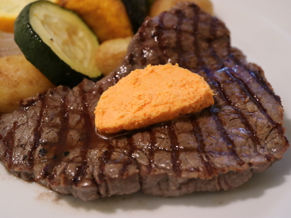 ●これね。北海道の放牧牛で赤牛というので、14歳経産牛と伺いました。熟成させることで旨味を強くしているのだと。黒にんにくソースと。