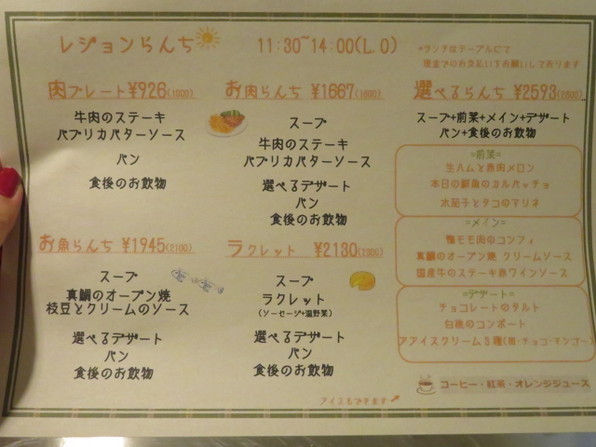 ●今回わたしがいただいたのは、スープと選べるデセール付きで1800円のセット。