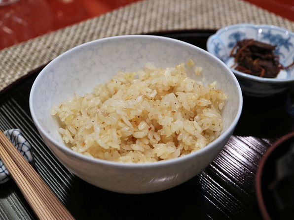 ●ガーリックライスを、伊勢海老だしの味噌汁と共に。王道の鉄板コースでした。
