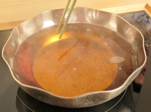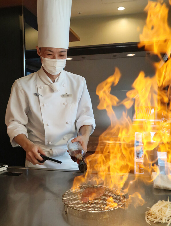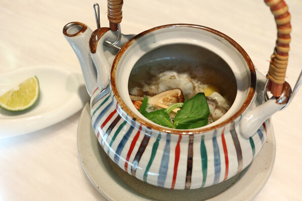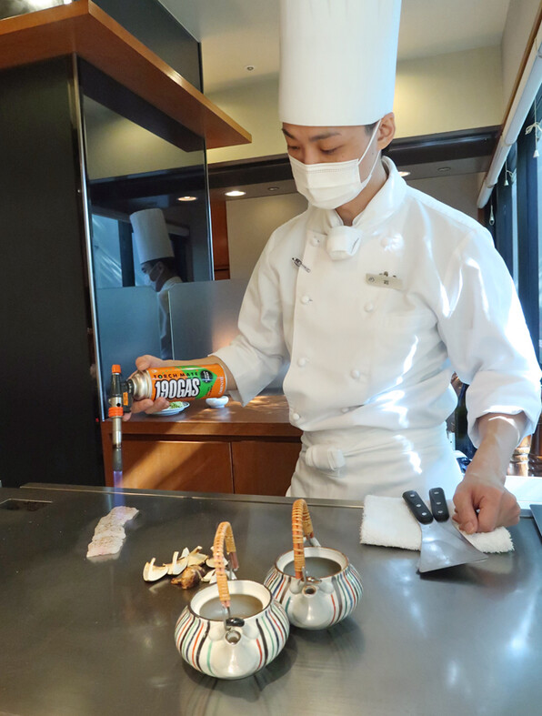 ●こちらはオプションでいただいた、土瓶蒸しです。鉄板で仕上げる土瓶蒸し、見事でした。