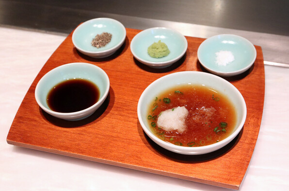 ●胡椒、わさび、塩、にんにく醤油、おろしぽん酢。