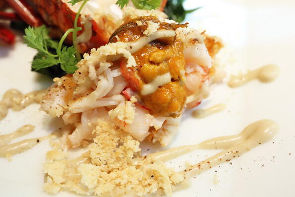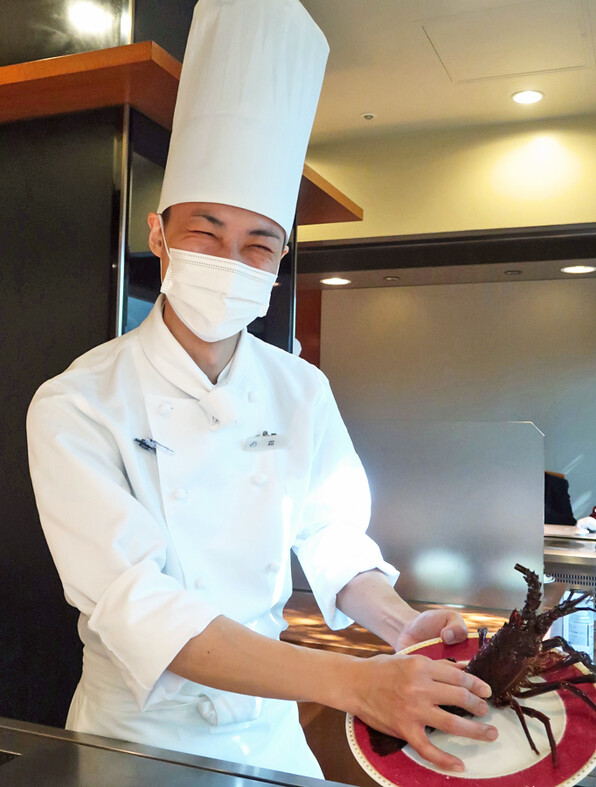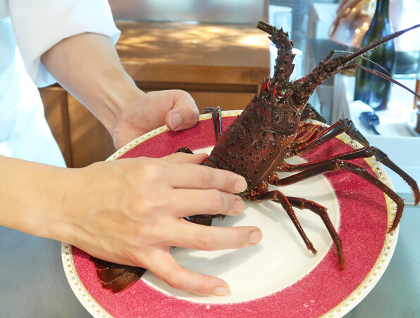 ●伊勢海老をプレゼンしてくれました。が、伊勢海老よりも、真っ白できれいなしもちゃんの手に釘付けです。