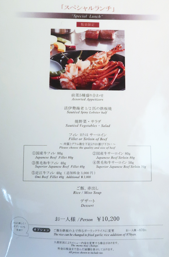 ●今回はこの昼コースで、ここにオプションやら追加のお願いやらをしていただきました。