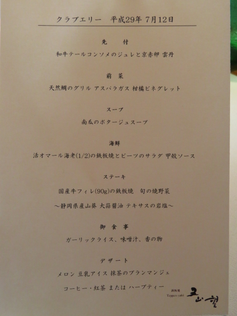 オマール半身にフィレ肉90g、他にもコンソメジュレの先付に魚やスープで至れり尽くせり、いたつくのコースをご用意いただきました。