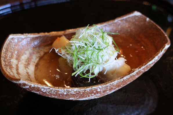 ●胡麻豆腐は胡麻ソースとではなく、じゅんさいと合わされて供されました。