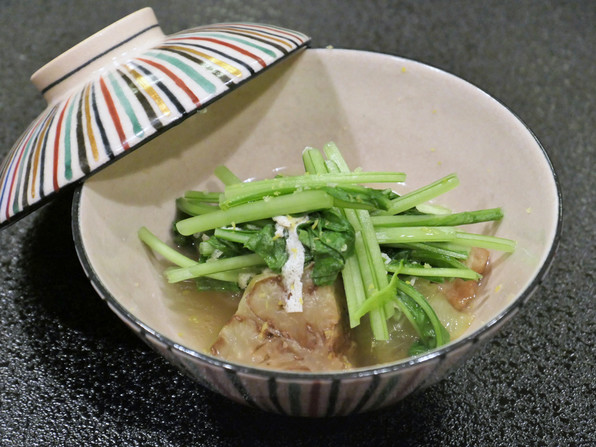 ●蕪蒸し(中にたけのこ、ふき、銀杏、生麩)、松葉蟹あん