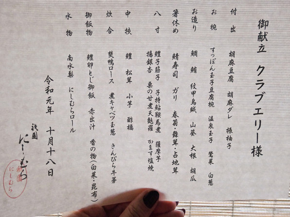 ■ 全国100万人の読者の皆さま、週の初めに「祇園にしむら」さんに出かけ、年始のコースをいただいたエリーでございます。