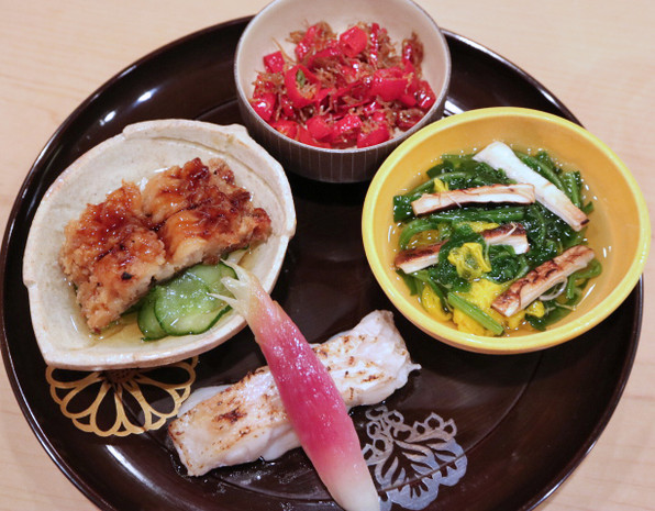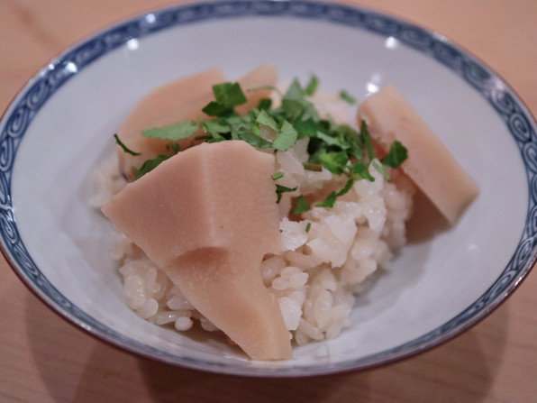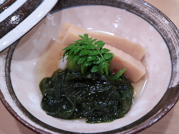 ●焚き合わせは、湯葉あんかけ、中にすけこ、筍、ふき、聖護院大根。