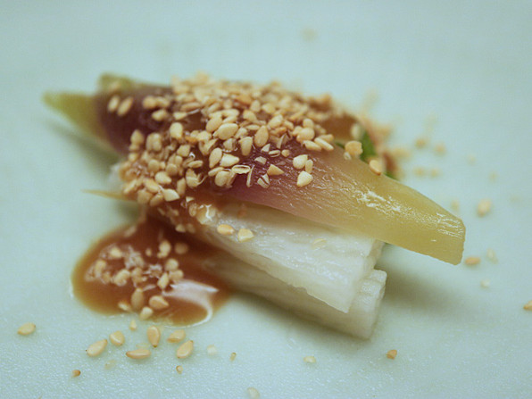 ●料理長が船越真人さん(現在「室町和久傳」副料理長)から三枝健次さんに交代して以来少し献立も変わり、夜コースをいただいてきました。
