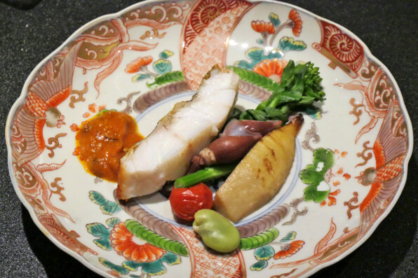 鱧ながらしっとり鶏スープの風味が入っているという摩訶不思議な料理です。