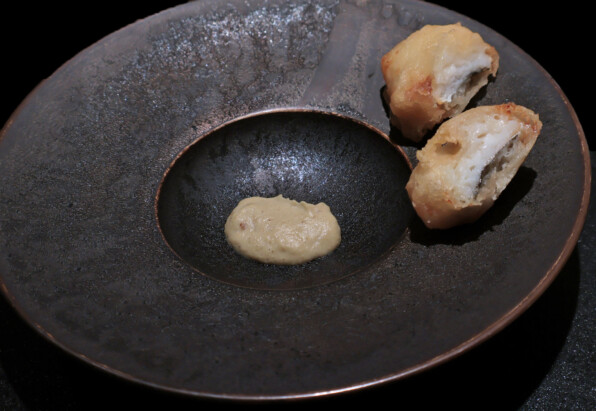 外側の衣のサクサク加減もたまらなくて、これは小麦粉、片栗粉、浮き粉、ベーキングパウダーにオリーヴオイルと炭酸水を混ぜて作られると。
