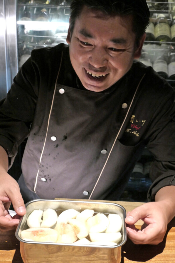 ●減圧調理を、実際に桃と梨で、目の前でやってみてくださいました。