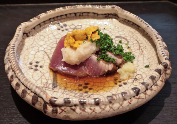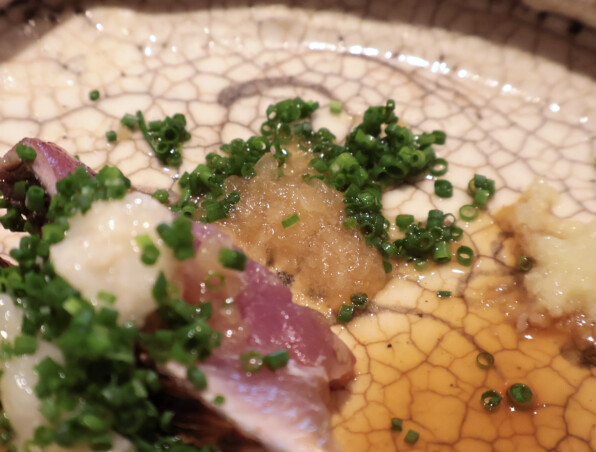 雲丹、わさび、辛味大根、酢取りの新玉ねぎ。ぽん酢吉野。