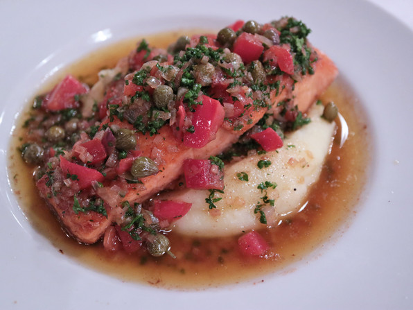 ●サーモンのポワレ・グルノーブル風(ケイパー、エシャロット、レモンなどで、さわやか~な仕立て)、