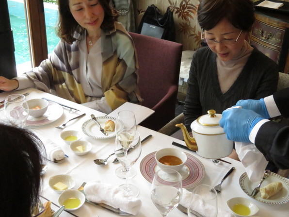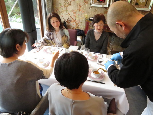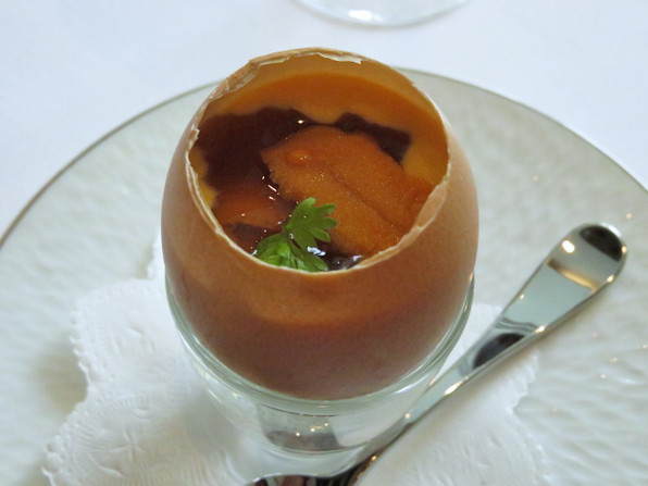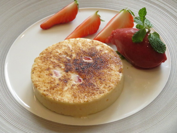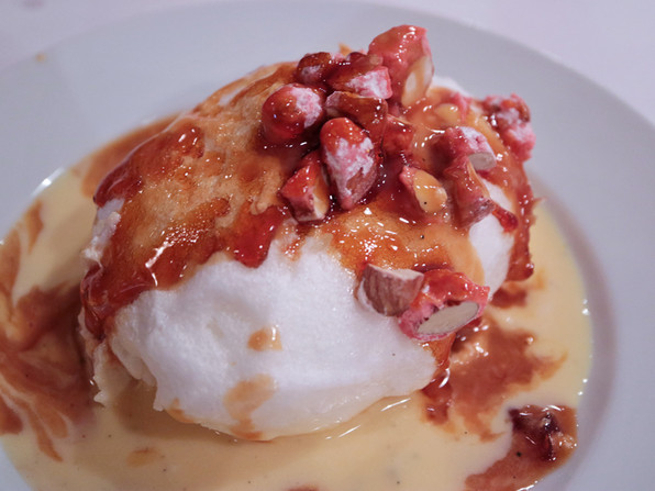●食後にウ ア ラ ネージュOeufs à la neige、少しリヨン風。リヨン風とは上のカリカリナッツがピンク色になっているからです\(゜o゜)/