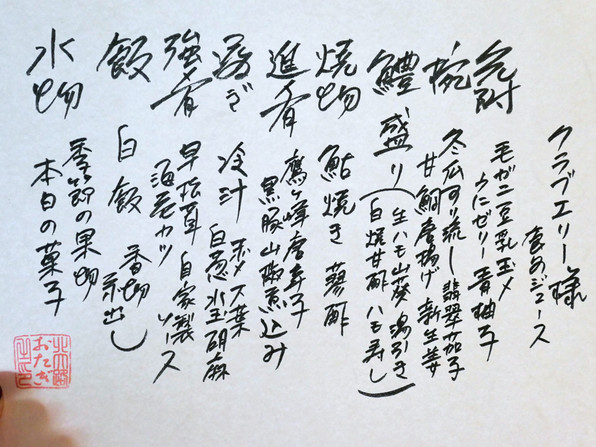 以下お料理、+税、サーヴィス料はなしで、21600円です。