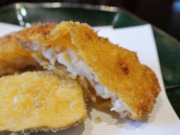 ●コロッケ、中には毛蟹の身がみっちりと。ソースも蟹風味で贅沢です。