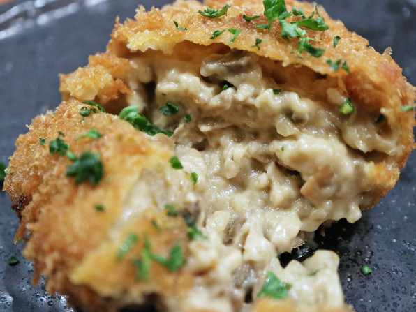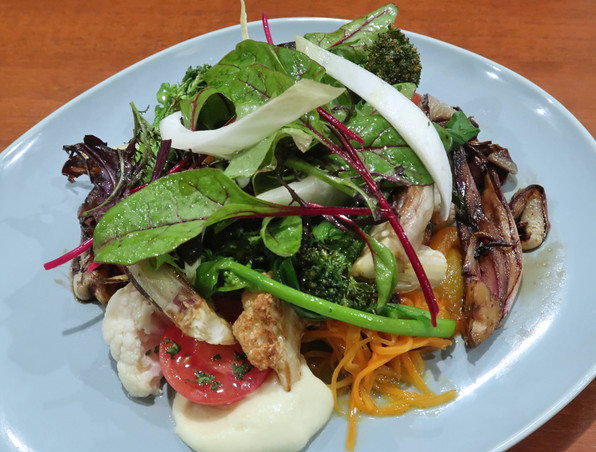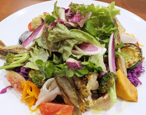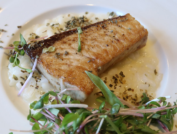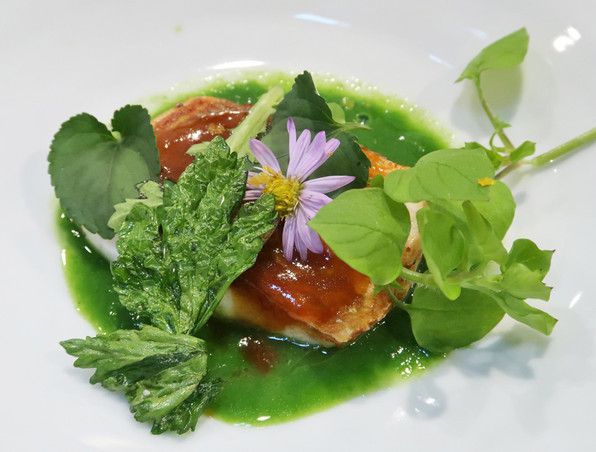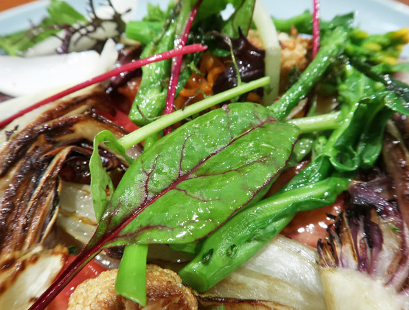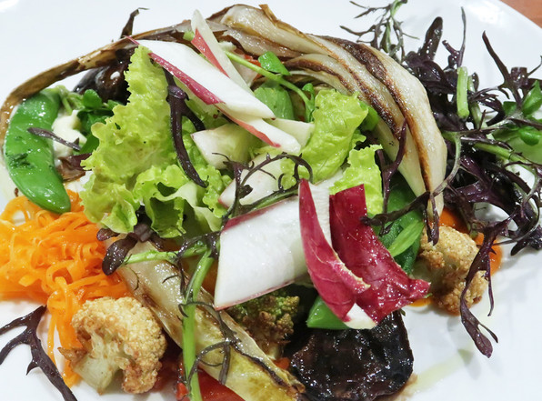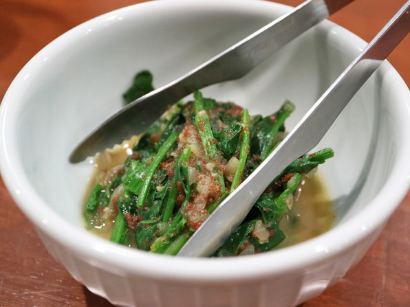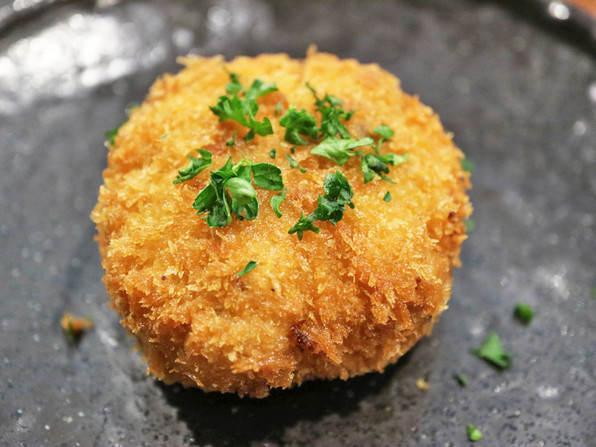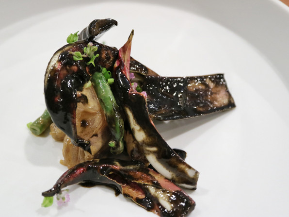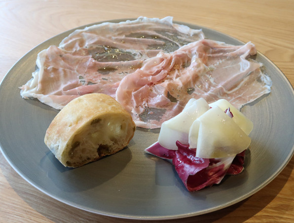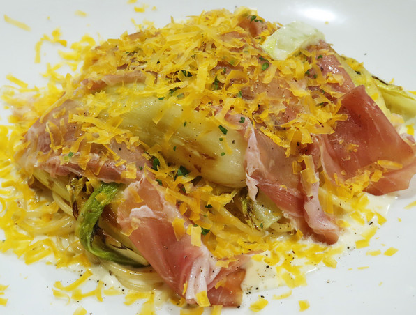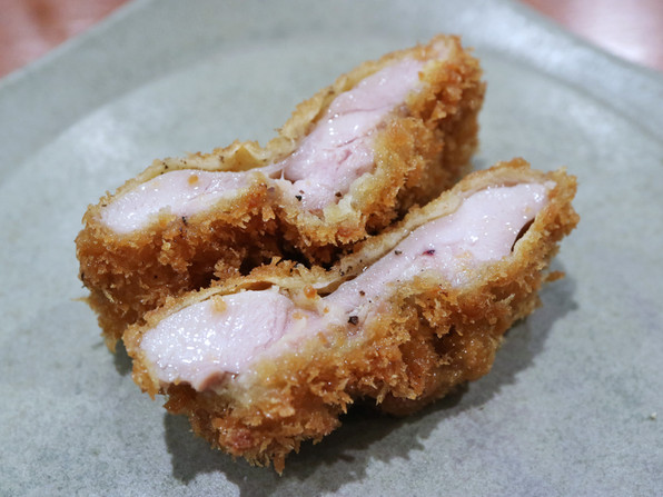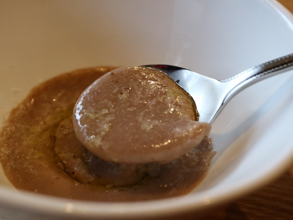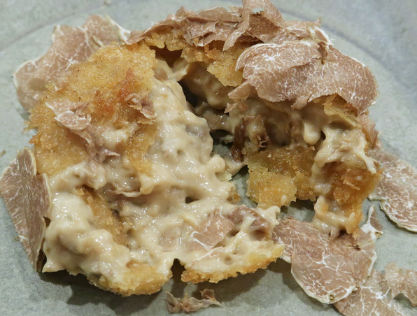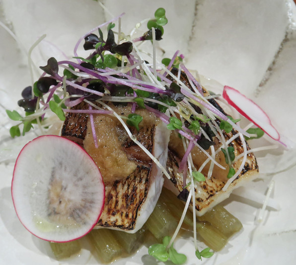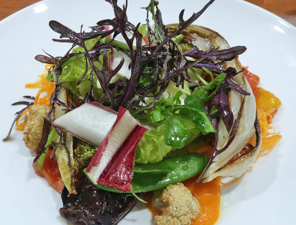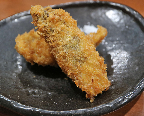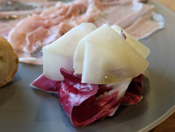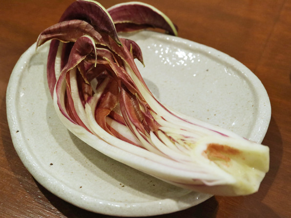●ひらすずきのフライ、手前は赤チコリのフライ、塩で。感じ入るほどおいしい。