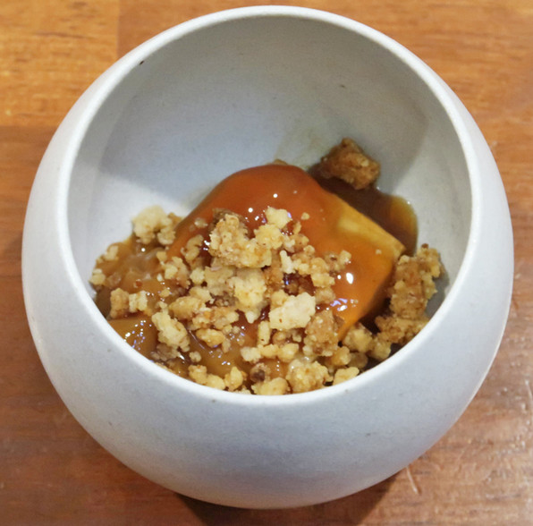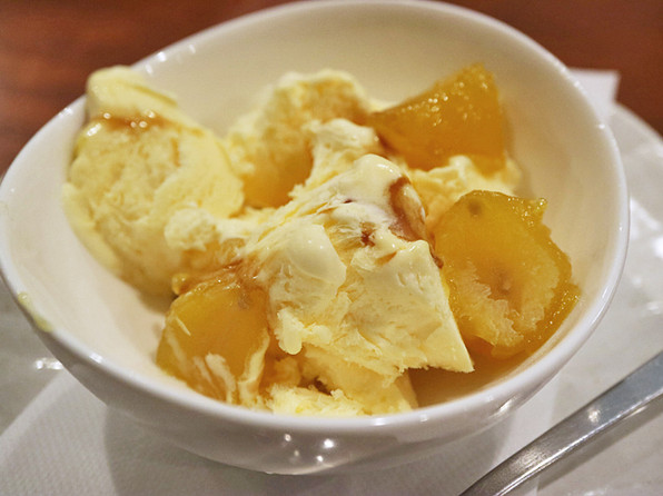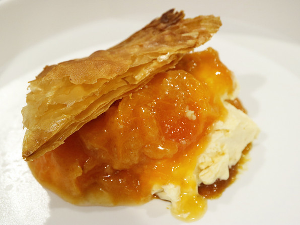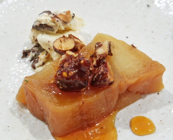 ●最後、りんごの、タルトタタン風に炊いたのに塩セミフレッドをいただき、