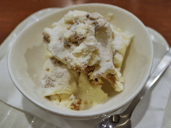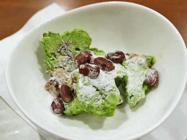 ●セミフレッドは羽生ゆずらない君の作で、栗きんとん、栗たくさん入り、みたらしソース、上からラム酒。おいしーい\(^o^)/