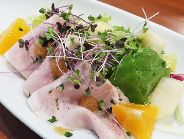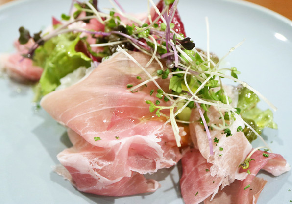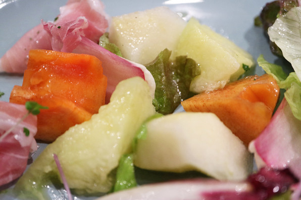 ●生ハムとメロン、柿、梨 パルマの生ハムも完熟の果物3種類も旨っ。