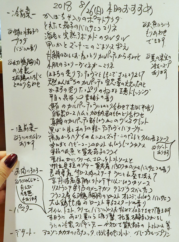 ただいま夏休み中の「リストランテ 野呂」は 20日(木)の夜から営業再開。ちなみに21日の昼はクラブエリーで貸し切りをお願いしています。クラブエリーの皆さん楽しみに♪