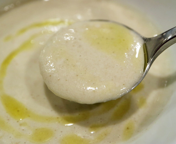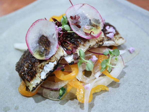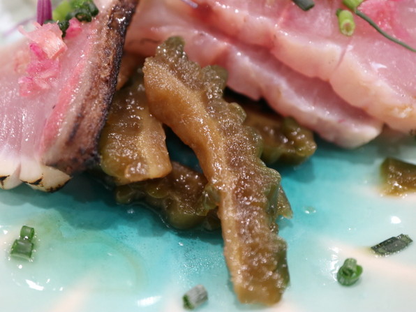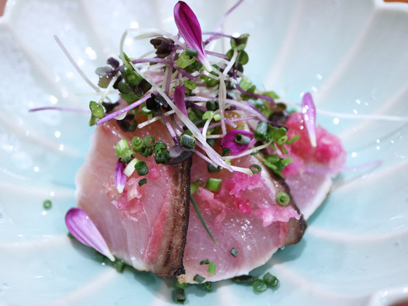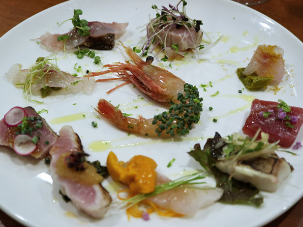 ●この日おすすめの生もの3つ。その1が、鯛と雲丹、蕪のピュレ。