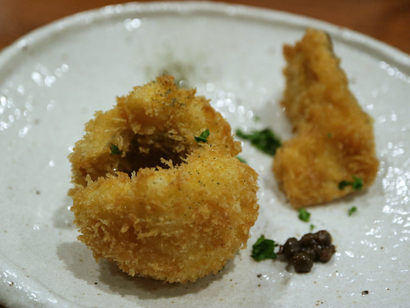 ●蟹クリームコロッケななめらか、クリーミー。蟹の身たっぷりでした。旨旨。