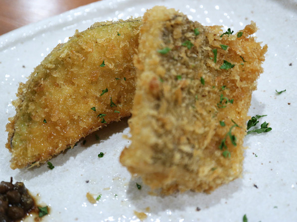●香住の蟹クリームコロッケと、赤はたのフライ。