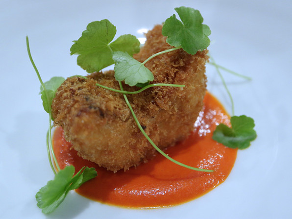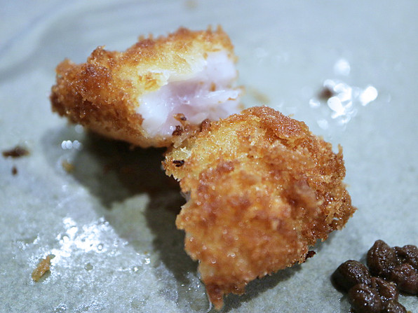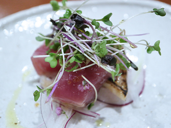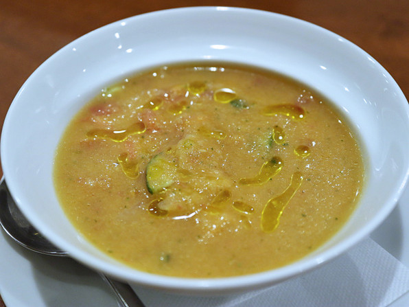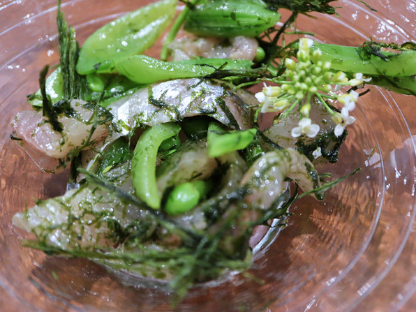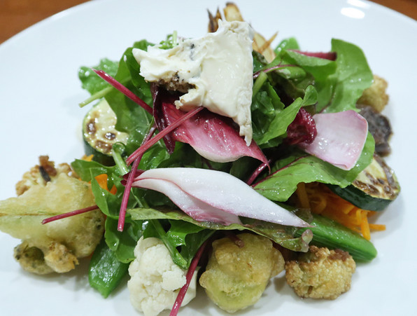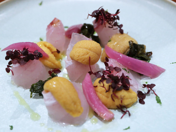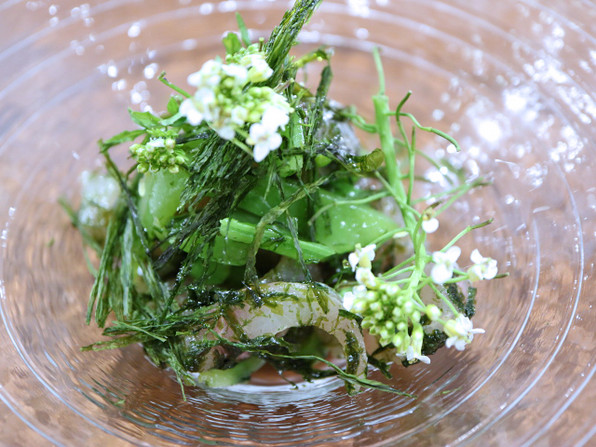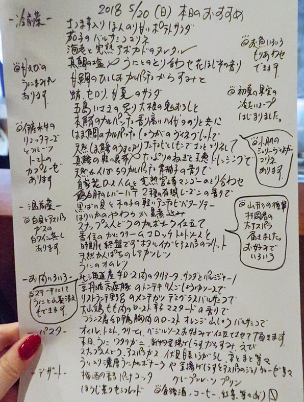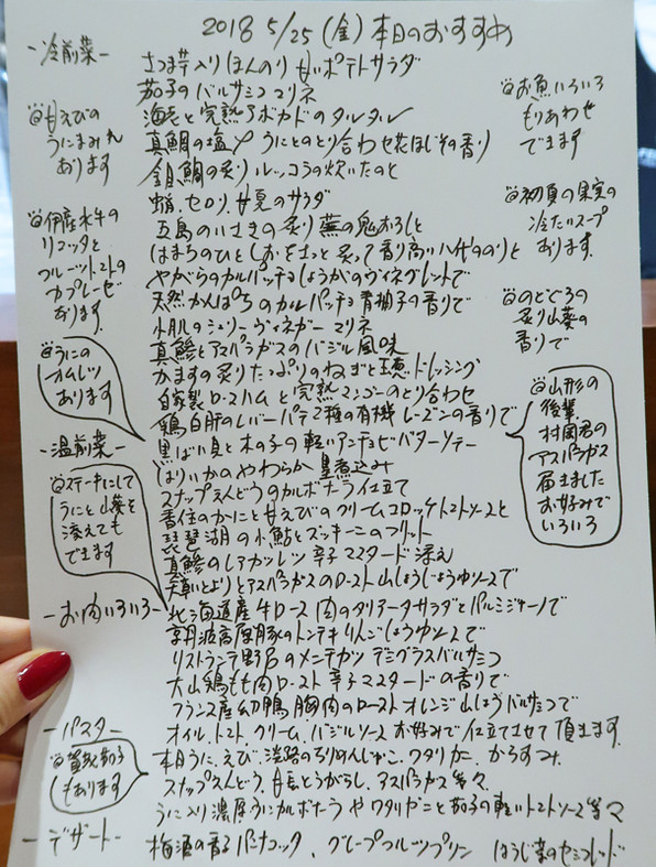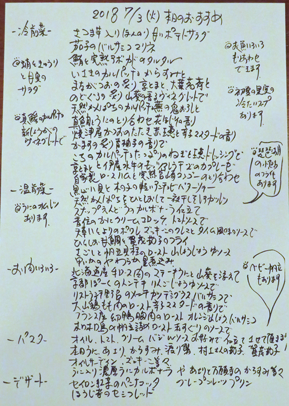 夏のフルーツスープに、山盛り野菜サラダと思ったら中からクリームコロッケが出てきたり、手延べピーチに魚介ソースで十分おいしいのにまだ雲丹がたっぷりのせられていたりと、何重にも味わいを重ねてあり、お皿の上は楽しさが爆発している感じでした。なんて気合の入った、圧倒的に力のある料理(^o^)(^o^)☆☆☆