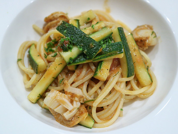 ●NP100=のろっちのパスタ100、その53はズッキーニとベビーホタテのスパゲッティ