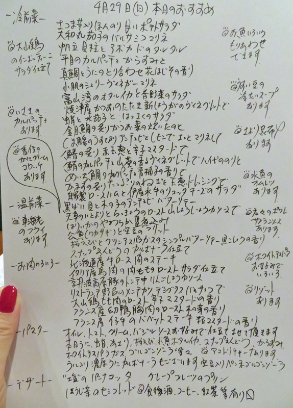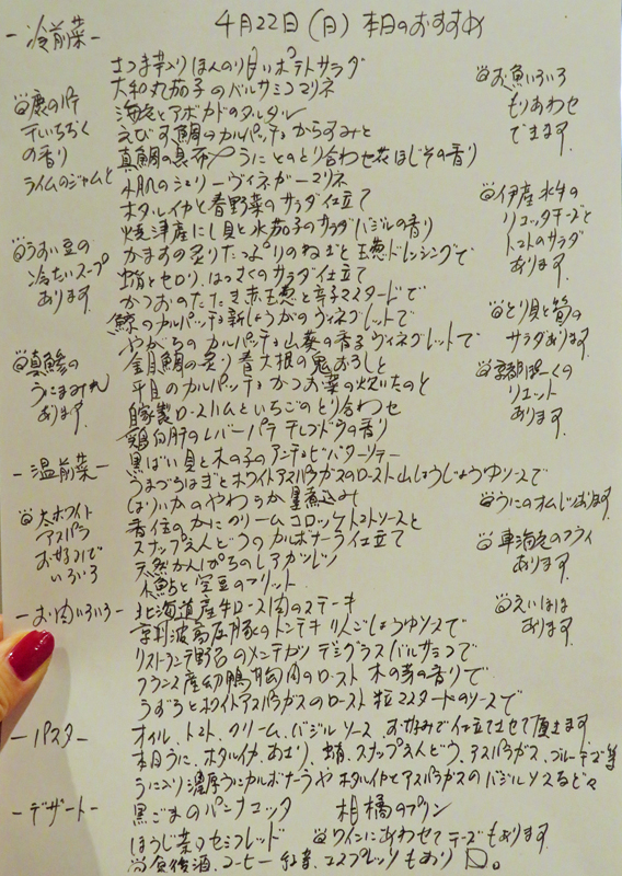 ●この日はこんなメニューでした。もうお腹いっぱいいっぱいに召し上がっていただきました。