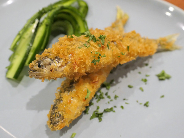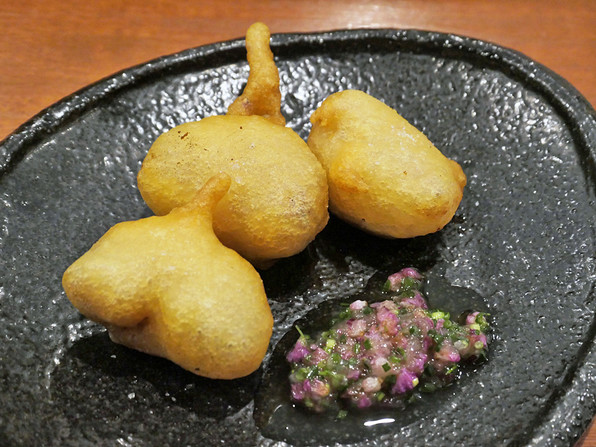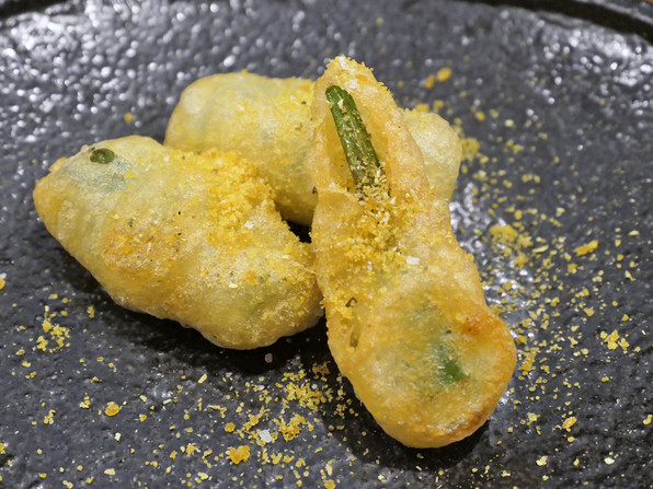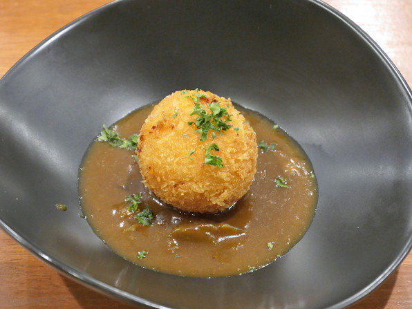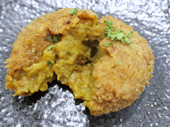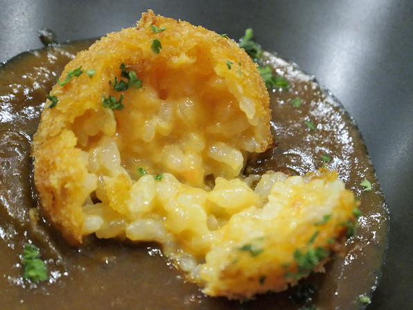 ●サフランご飯のアランチーニ(ライスコロッケ)万願寺と平茸のクリームソース、