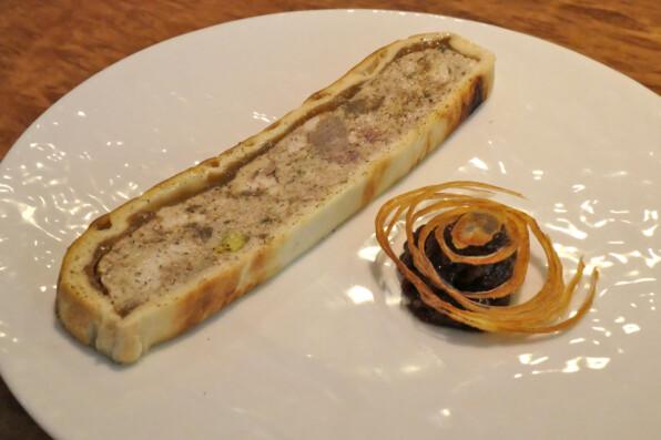 近江鴨、国産の豚肉と鶏肉。野菜のジュレ。フォアグラを使っていないのがわたしにはすごくうれしいです。
